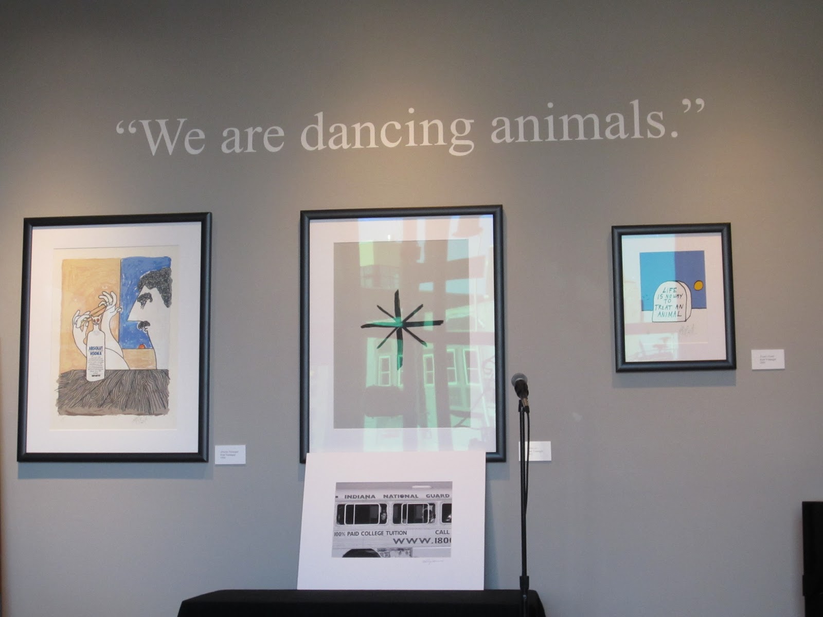 The library is an amazing combination library (literally, it has a collection of Kurt Vonnegut's own books) and museum space/art gallery. KVML is a non-profit venture, superably curated by Excecutive Director and Library Founder, Julia Whitehead.